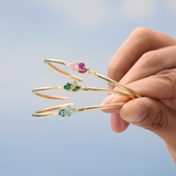 Step into a world where colours dance in the sky's embrace with our 'Clouded in Colours' series. This enchanting line of twelve cluster ombré birthstone bangles blend soft hues and radiant tones inspired by nature’s most captivating moments. Each piece reflects the seamless transition of colours found in a sunrise and the vibrant rainbow after the rain to represent inclusivity and diversity, making them perfect for layering. Whether you choose to match with a friend or wear it as a reminder of someone special, adorn yourself in colours that remind you of endless possibilities and a spectrum as unique as you.