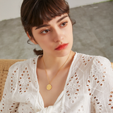 Enchant your aura with the strong protection symbol of the ancient Evil Eye. The clean design brings out the simple magic of a classic mythical charm. This sleek pendant looks great layered with shorter chains.
